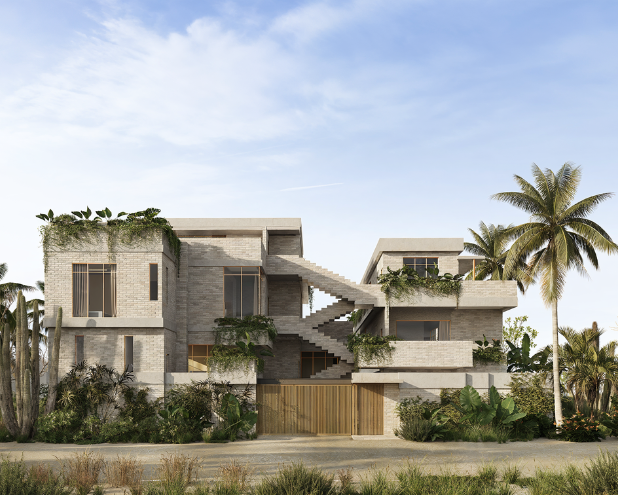 Diseño por niveles que ofrece privacidad natural y vistas parciales al mar en las unidades superiores.