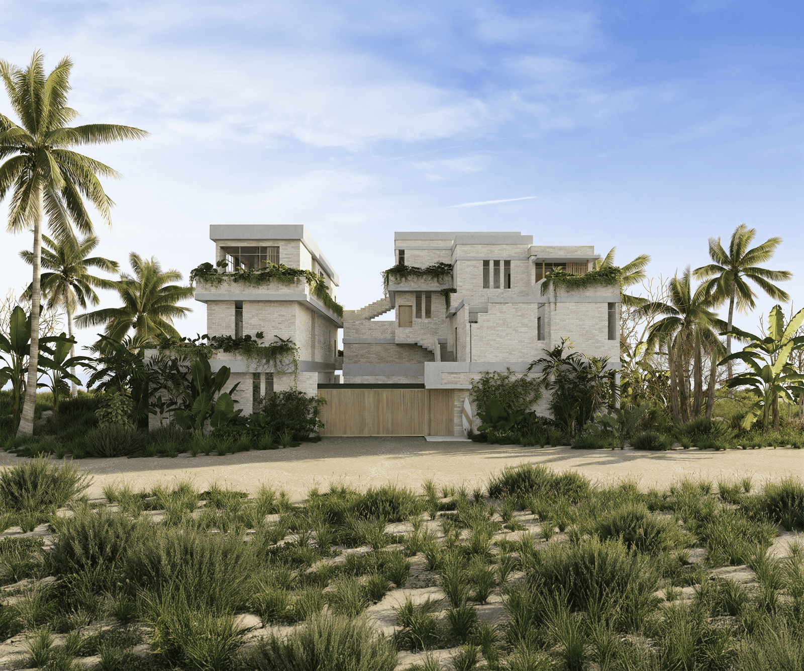 Diseño por niveles que ofrece privacidad natural y vistas parciales al mar en las unidades superiores.
